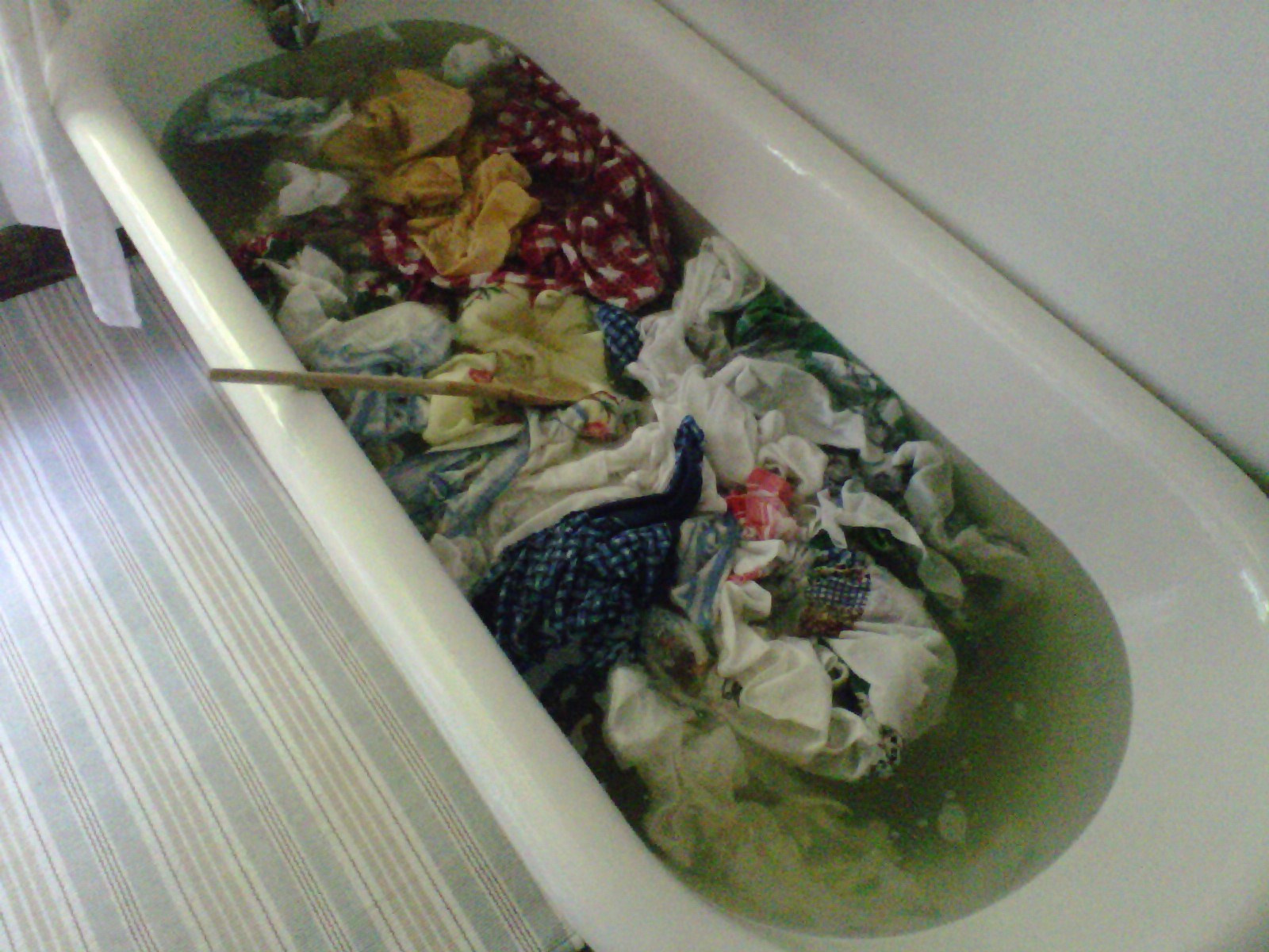 The Laundress Stain Solution. Prepare a bath of hot water and 1/8 All-Purpose Bleach Alternative. Add textiles and let sit - soak for a minimum of 30 minutes...follow with